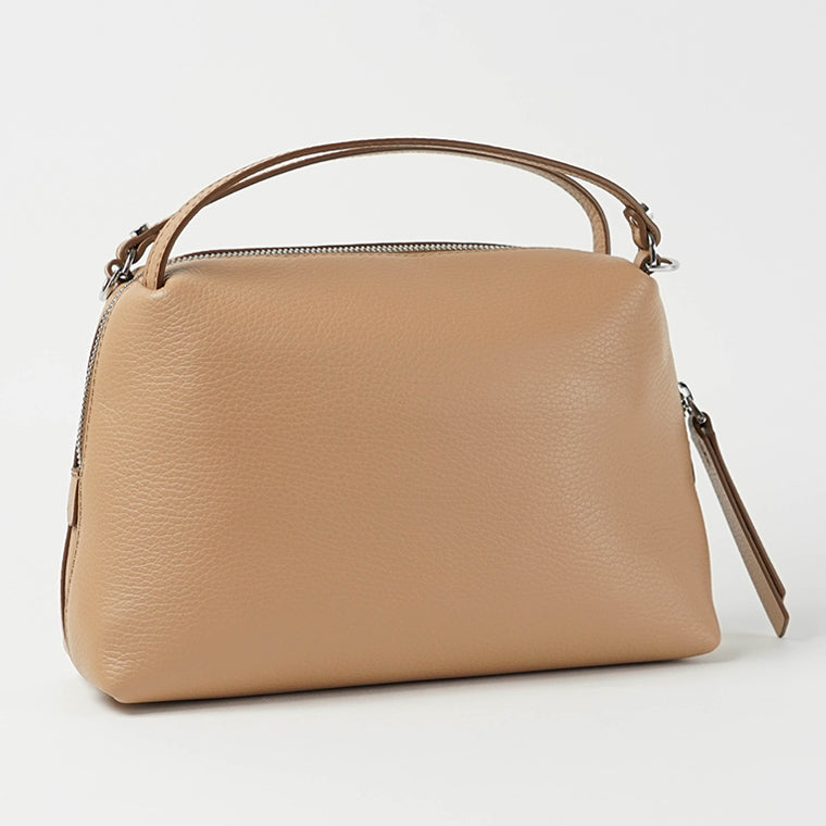 コロンと可愛らしいフォルムが印象的な2WAYショルダーバッグ。レザーの艶やかな表情とシンプルで洗練されたデザインが都会的なスタイルに格上げしてくれます。ショルダーストラップを結んで持ち方をアレンジすることも楽しめます。お色違いやサイズ違いも集めたくなってしまう大人気バッグです。
